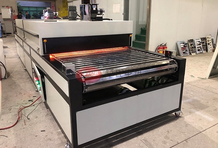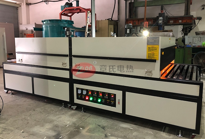 4、控制部分:每段爐蓋配單獨的小控置電箱,每段的溫度可獨立控制和顯示,溫控系統宣榮牌H721型微電腦智能型數顯溫控器,配有PV和SV數字顯示窗口,采用模塊連續緩沖式輸出控制加熱器,  采用SSR固態繼電器輸出。顛覆傳統過零觸發時帶來的電流瞬間沖擊大、控溫波動大等影響,配合性價比極高的E系列4-20MA輸出型溫控器,可使輸出電壓平穩線性變化,控溫效果更穩定,性能更卓越,(可根據溫度的誤差大小自動調整輸出功率的大小)使溫度更加精準,  溫度室溫至200℃任意可調,雙溫控器控制(設有超溫上限溫控器,防止因主溫控器失控而損壞其產品,功能有PID自整定微積分控制、自動恒溫、超溫斷電報警、漏電保護、電機過載保護等功能,內部溫差±3度;分四段八路控制(當到達設定溫度時可任意關掉其中幾段發熱管,降低加熱功率,其達到省電效果)。其它控制電路電器均采用進口三菱和日本富士電器控制;前后設有緊急停機按鈕.確保安全.箱體前后兩段裝有多色指示燈,可隨時監控爐內的工作情況和故障.鏈條設有防卡死和報警裝置。