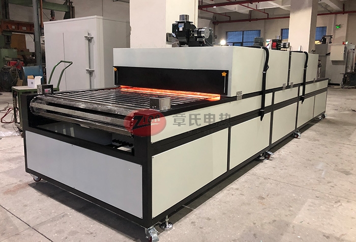 1、爐部分外形尺寸:線體總長12米,網帶寬1.0米,總高1.6米,出料部分長1米,烘干部分長10米,分為5段,進料部分長1米,冷卻區為0.4米,線體大梁支架和箱體外殼采用2.0㎜厚冷板折彎而成,整機外殼高溫靜電噴塑(非普通油漆)耐腐蝕易清洗,機架用50×50㎜方通焊接而成,配16㎜調節腳杯。